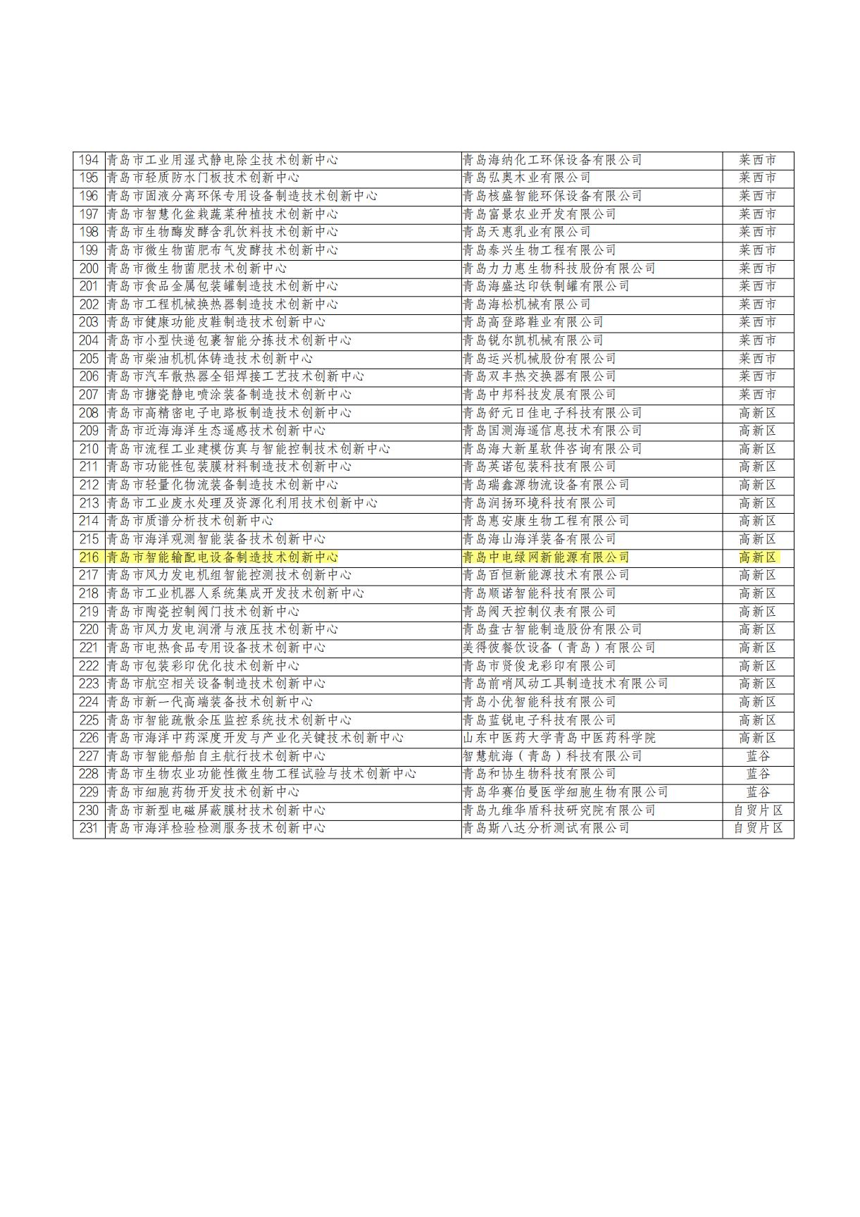 中電綠網榮獲為青島市技術創新中心
